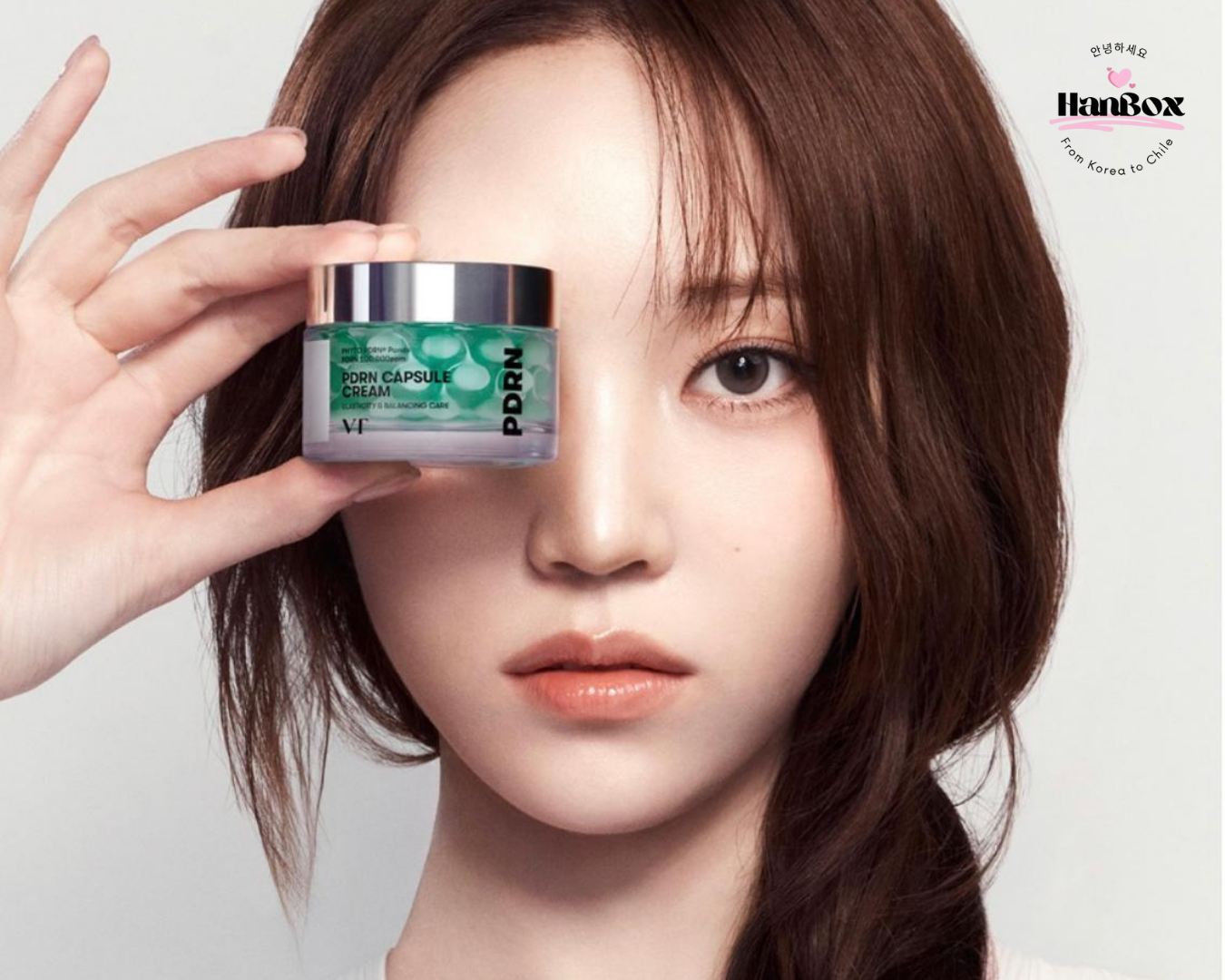 Una combinación de cápsulas que contienen PDRN y una crema en gel humectante.